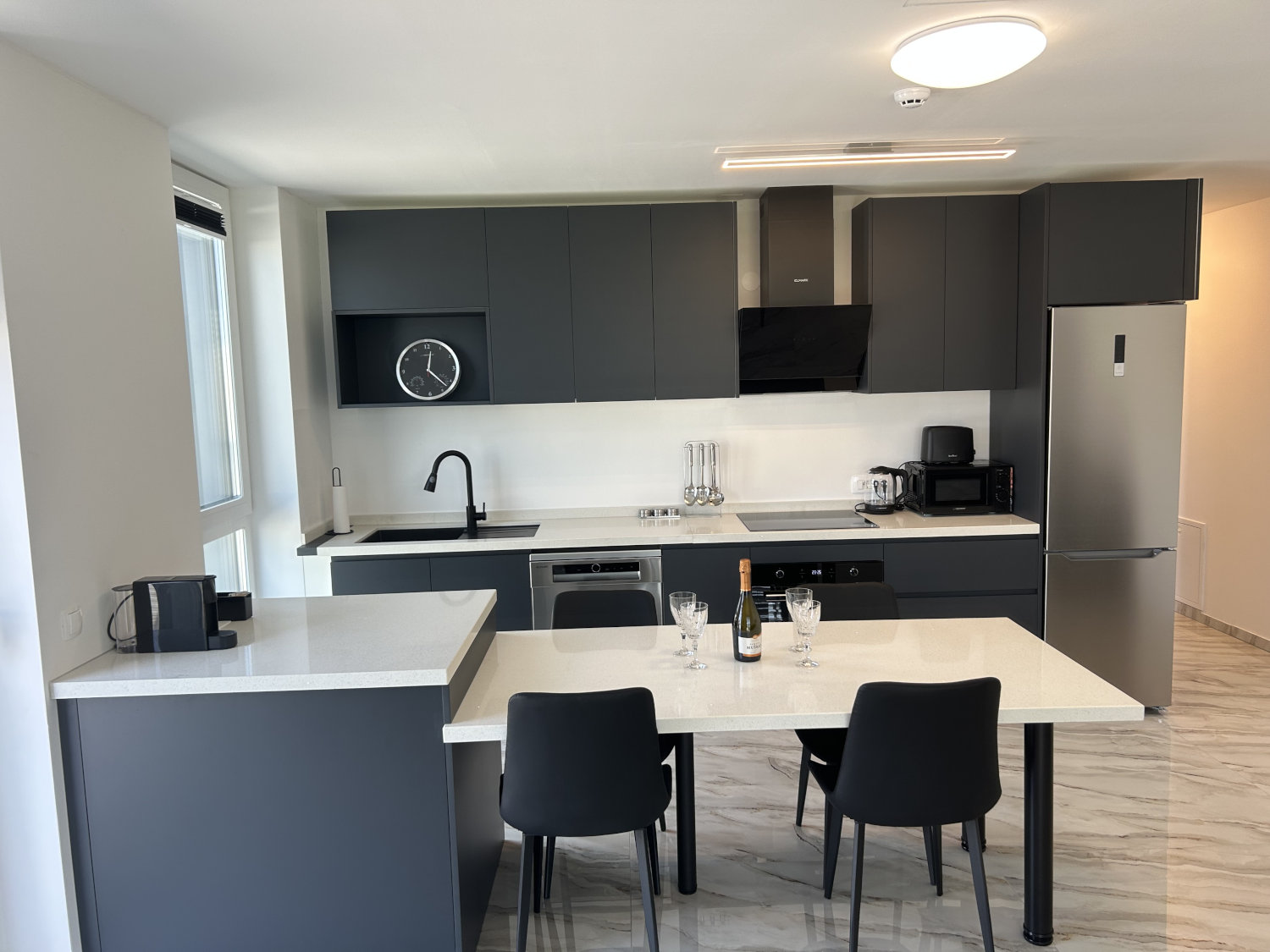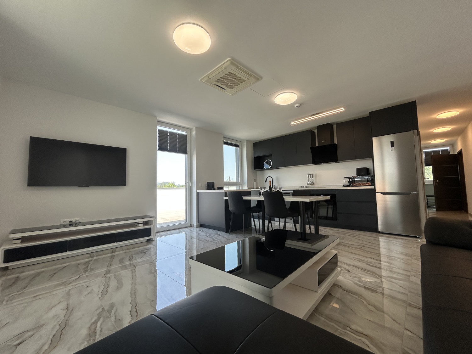 La casa di appartamenti WALLY offre appartamenti nuovi e arredati in stile moderno a Draženci, a pochi minuti di auto da Ptuj (5 km) e vicino all’autostrada Maribor–Zagabria. Cinque unità spaziose con cucina attrezzata, angolo lavoro, aria condizionata e Wi-Fi veloce sono pensate per un soggiorno rilassante o per una fuga attiva nei dintorni – in bicicletta, tra i campi o sulle acque tranquille del fiume Drava. Dopo una giornata in giro vi aspettano una terrazza comune e un ampio prato tra i noci; per i bambini c’è un’area giochi all’aperto e all’interno una sala comune accogliente. Disponiamo di parcheggio gratuito; nella nostra azienda di famiglia potete assaggiare specialità a base di noce e altri prodotti locali.